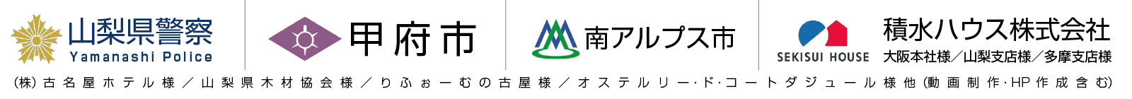 これまでに、積水ハウス大阪本社様・山梨支店様・多摩支店様、山梨県警、甲府市、南アルプス市、古名屋ホテル様などと多くの取引さていただいており、全く違う業種ですが、紙媒体以外の動画などを含め長期取引もさせていただいております。